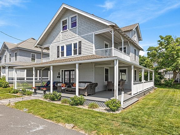 This exquisite home offers breathtaking panoramic views of the bay and is situated on the coveted Sunset Avenue. The property is situated in a rare and coveted location renowned for its breathtaking sunset vistas.The wrap-around porch, spanning over 1,000 square feet, provides ample space to accommodate large gatherings or offers a comfortable retreat to enjoy the ocean breeze, spectacular views, and mesmerizing sunsets. This turn-of-the-century Victorian features high ceilings, expansive living windows, wood floors, updated bathrooms, and panoramic views from every room.The first floor boasts an updated granite kitchen and dining room, complete with a half-bathroom. The second floor comprises three bedrooms, and the third floor is a bonus feature with four summer bedrooms, providing ample room for future expansion. The updates include bathroom renovations, the main bedroom, flooring, interior doors, lighting, exterior doors, and windows.