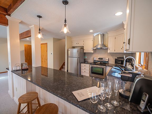 Beautiful woodsy updated Suntec townhome just down from the base of the Mount Snow ski resort. This spacious 4 bedroom townhome sits about a mile south of Mount Snow, with direct access to snowmobile trails, and easy access to the nearby village of Wilmington and lakes. The unit has a large renovated open concept floor plan with vaulted great room, rustic wood paneling, passive solar exposure, a wood burning fireplace and brick hearth, large dining room with exposed beams, newly renovated kitchen with granite counters, stainless appliances, and breakfast bar, updated carpet and furnishings, large mudroom entry, main floor bedroom suite wit full main floor bath and sauna, a second floor primary suite with vaulted ceiling and walk-in closet, two large guest bedrooms and a full guest bath, and a third floor large family room perfect for overflow sleeping and office space with an additional half bath. This also has eaves and large closets ideal for owner storage since the style is perfect for strong rentability. Suntec has never had a special assessment so budgeting is easy, and amenities include building maintenance, recently redone roofs, hot tubs allowed outside, an outdoor swimming pool, tennis court, direct shuttle service to Mount Snow, landscaping, and snow removal. Brand new boiler Fall 2022, new disposal, and other recent upgrades.