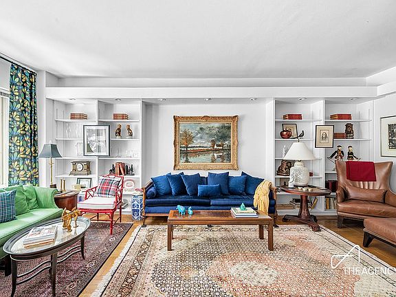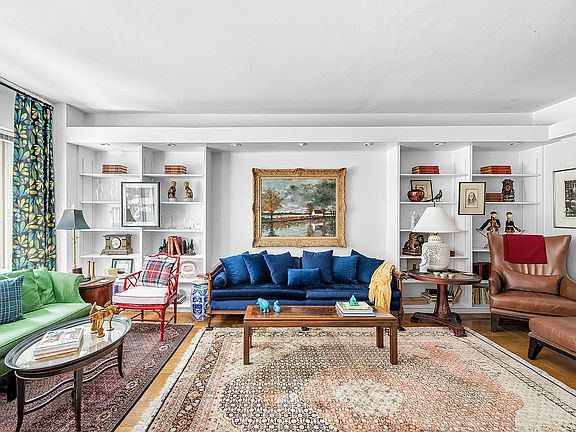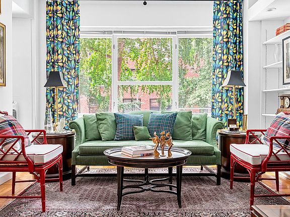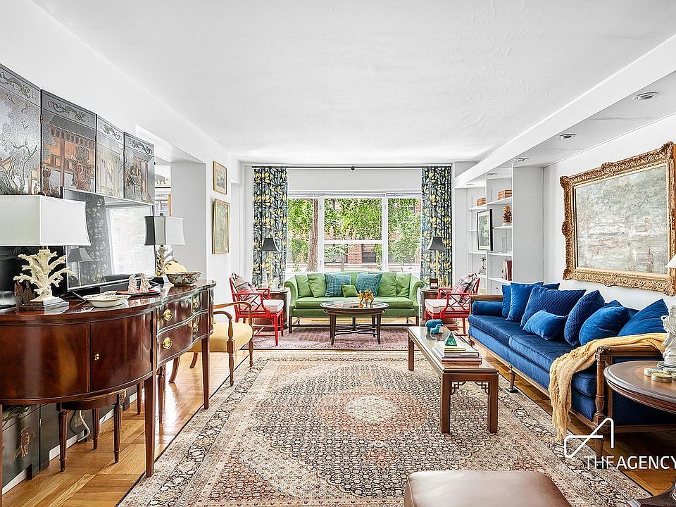 Upon arrival, you are welcomed by a formal entry foyer that sets the tone for this classic home. The expansive living room is complete with built-in bookcases accented by recessed lighting, offering both architectural charm and functionality. Large windows frame lovely tree-top views over 55th Street, and the entire apartment is kept comfortable year-round with newly installed wall-through A/C units.