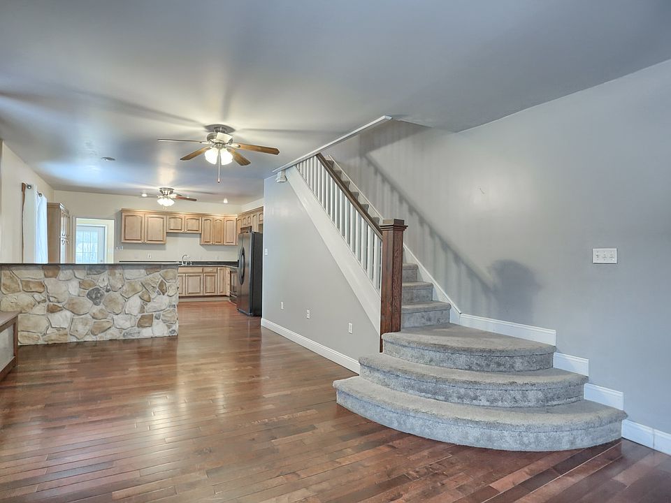 Enter this beautiful home and the first thing you'll notice is hardwood flooring - it will take your breath away. 3" solid maple with cherry finish has been generously laid on all 3 floors. The desirable open floor plan living & dining room area leads to the completely remodeled kitchen. Gorgeous Kraftmaid 40-handle, dove-tailed cabinetry coupled with stylish granite countertops and sleek black appliances with matching breakfast bar are a must-see. Continue on through to the main floor laundry, past the half bath and out onto the deck overlooking the fenced yard. On the second floor you'll find 3 large bedrooms and a full bath with tiled shower, cable tv & phone jacks - like the many other rooms in the home. Travel upstairs to the fully finished 3rd floor bedroom and be amazed by the overall space. Plus, the home has dual-zone EFM coal heat with 200 amp electrical service, 12/2 wire throughout, and pvc sewer piping. Book your appointment to see this one today