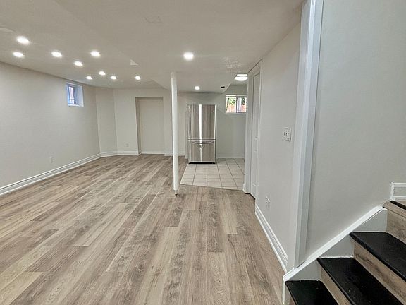 This basement boasts a spacious kitchen, a private bedroom, and an open-concept recreational area with ample space for relaxation and entertainment. The entire area features new flooring. The kitchen is equipped with s/s appliances. The private bedroom is sizable. Located just seconds from Highway 427 and the vibrant core of West Woodbridge, this basement offers both comfort and convenience. Tenant Will Be Responsible For 30% Of Heat, Hydro, Water & Rental Items. Tenant Will Require Liability Insurance. 2 Parking Included.