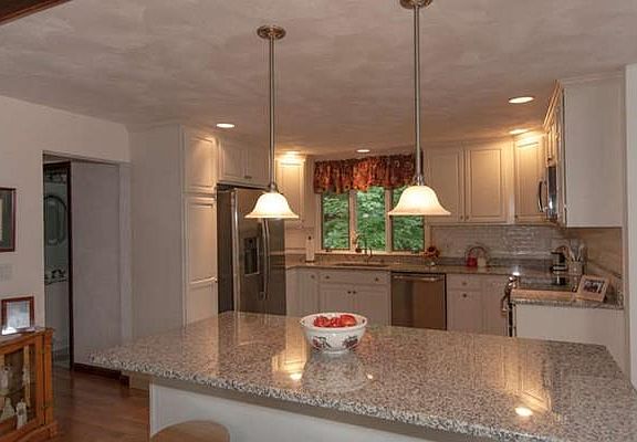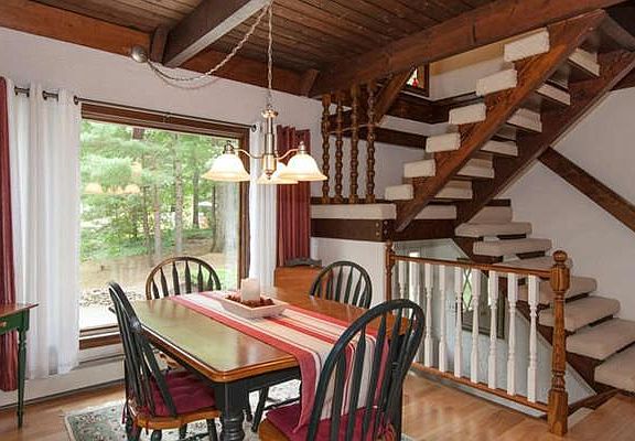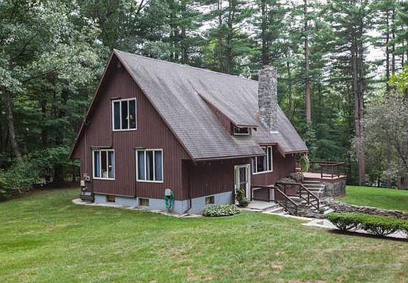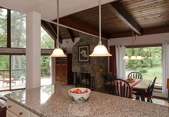 Welcome. A rare opportunity to own this custom built contemporary A-frame home. Features include a two story floor to ceiling wall of glass overlooking 3 picturesque acres. The exceptional open floor plan with high, wood beamed ceilings, new kitchen with white cabinets, island with seating, beautiful granite countertops, hardwood floors and stainless steel appliances opens to the sun-filled family room with glass sliders to the wrap-around deck. Perfect for year round entertaining. This home also offers the flexibility to have a first floor master. You won't want to miss this home!