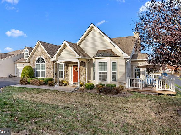 Immaculate! Meticulous! Exceptional! Three Bedroom / Three Bathroom Thornhill model with premier location and deck overlooking walking trail. The Villas at Five Ponds is an Active Adult Community situated in the heart of Bucks County with an elegant clubhouse with world-class facilities. This beautiful community offers a park-like setting rich in amenities and activities. The home is accented in stone and maintenance-free exterior siding. Living room and dining room with Vaulted ceiling and decorative chair-rail and picture-frame molding. Eat-In Kitchen with 42-inch wood cabinetry, Granite countertops, stainless steel appliances is open to Family room and great for entertaining. The family room has a Cathedral ceiling, gas fireplace with decorative floor-to-ceiling stone and flanked by two decorative windows, recessed lighting, and access to Sun Room. Master Bedroom has Cathedral Ceiling, with large palladium window, walk-in closet, and private bathroom equipped with deep soaking bathtub, separate shower, and two vanities. Bedroom #2 has a walk-out bay window and is adjacent to Bathroom #2. The deck is great for people watching and is completely maintenance free. Hardwood floors throughout the main level. The laundry room and two car garage complete the first floor. The loft bedroom (#3) is private with a full bathroom ( #3) and large storage closet. Natural gas furnace and central air conditioning.