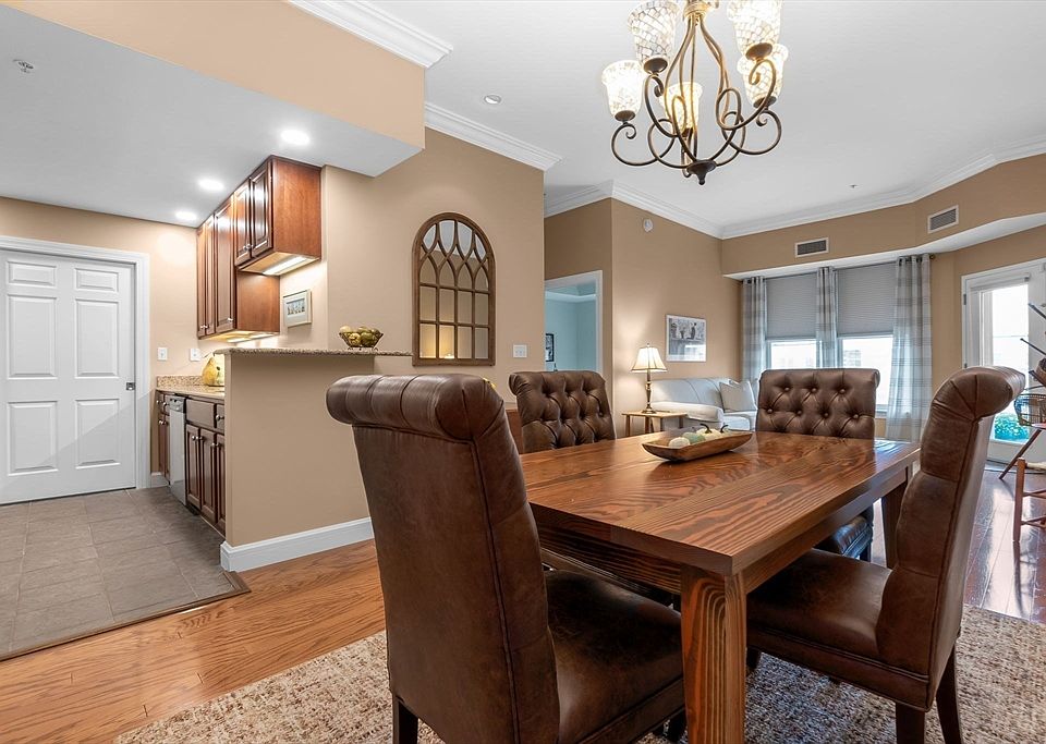 Welcome to your PENTHOUSE RETREAT, where soaring 10’ ceilings and deep crown molding create a sense of space and sophistication. Sunlight pours across HARDWOOD floors, softened by Hunter Douglas blinds, while a NEW storm door opens to your private balcony—perfect for morning coffee or evening unwinding. Primary suite is a true sanctuary with a SPA-INSPIRED BATH, generous WALK-IN CLOSET, and its own BALCONY access. A handsome cherry & GRANITE KITCHEN with STAINLESS appliances invites gatherings around good food and conversation. Life here extends far beyond your door. Take a dip in the POOL, relax in the HOT TUB, or stay active in the FITNESS CENTER. Meet neighbors in the function room or library, or enjoy evenings around the PATIO GRILLS. With UNDERGROUND PARKING and a PET-FRIENDLY community, convenience is built into every detail. Recent updates include a NEW GAS WATER HEATER (2023) and a GAS HVAC system (2020) This is more than a condo—IT'S A LIFESTYLE.