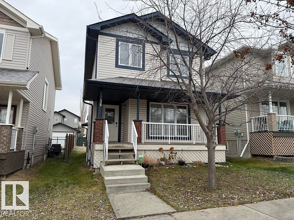 Charming 2 Storey in wonderful Spruce Village. Featuring 3 bedrooms up with 2 full baths and an additional 1 bedroom, 1 bath in the basement. This beautiful home is west facing with a covered front porch; enhancing the inviting curb appeal. The large welcoming front entrance, leads to a spacious, open concept main floor, where the living room / dining room / kitchen flow seamlessly together. Ideal for entertaining. The bonus space in the basement with a wet bar is prefect for a play space or tv room. Location is ideal for schools, parks, and shopping with quick access to HIWAY 16. Back alley access to the energized parking pad. Option to build a garage is there also.