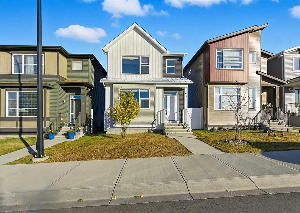 FRONTING ONTO GREEN SPACE | ENCLOSED HOME OFFICE ON THE MAIN FLOOR | FRESH PAINT AND TASTEFUL UPGRADES THROUGHOUT | QUICK POSSESSION AVAILABLE | JUST A 7 MINUTE WALK TO THE LIVINGSTON HUB! This move-in ready home in vibrant Livingston combines modern finishes with a functional family layout in an unbeatable location facing a peaceful green space. A welcoming entryway opens into a bright main level with hardwood floors, large windows and an open floor plan designed for everyday living. An enclosed den just off the foyer provides a quiet and private workspace ideal for remote work or study. The kitchen is a chef’s delight, featuring stainless steel appliances, a central island with seating for casual meals, sleek cabinetry and a walk-in pantry for extra storage. Clear sightlines from the kitchen to the dining and living areas create a seamless flow for entertaining or keeping an eye on the kids. The living room provides a relaxing space with extra windows that fill the home with natural light and warmth. A convenient mudroom connects to the backyard, while a main floor powder room adds everyday practicality. Retreat at the end of the day to the spacious primary bedroom on the upper level offering a large walk-in closet and a 4-piece ensuite for relaxation at day’s end. Two additional bright bedrooms and another full bathroom complete the upper level, providing comfort and privacy for family or guests. The unfinished basement holds endless potential for future development with ample storage and flexible space to suit your needs. Outside, the fenced backyard offers grassy play space for kids and pets, plus a gravel pad ready for a future double garage, perfect for customizing to your lifestyle. Enjoy the convenience of fronting onto open green space while being just minutes from parks, playgrounds and the incredible Livingston Hub, which features a gymnasium, indoor basketball courts, outdoor skating rink, splash park, skate park, tennis courts and even a summer farmer’s market. With over 250 acres of open space, walking trails and quick access to Stoney and Deerfoot Trails, this growing master-planned community offers an active, connected lifestyle with everything you need close at hand.