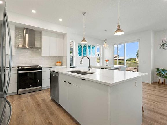 Step into timeless sophistication in this beautifully crafted home, located in the award-winning lake community of Mahogany. Designed with both elegance and functionality in mind, this nearly new property (less than a year old) offers an elevated living experience with countless upgrades and a thoughtfully curated layout. Ideally positioned with a peaceful green space at the front and picturesque views from the back, this home offers a rare blend of tranquility and visual appeal. The main floor features a dedicated office space, a stylish 2-piece powder room, and a stunning open-concept living, dining, and kitchen area ideal for both everyday living and upscale entertaining. The chef-inspired kitchen boasts high-end appliances, sleek quartz countertops, upgraded cabinetry, and a convenient walkthrough pantry that blends form with function. Upstairs, discover three spacious bedrooms including a serene primary retreat complete with a spa-like ensuite and generous walk-in closet. A second full bathroom, upper-level laundry, and a spacious bonus room offer comfort and practicality for family living. The fully finished basement extends the home’s living space with two additional bedrooms, a full bathroom, and a large recreation room—perfect for movie nights, hobbies, or hosting guests. Additional highlights include a double attached garage, central air conditioning, and a fully landscaped yard that enhances curb appeal and outdoor enjoyment. Set in the vibrant community of Mahogany, residents enjoy access to an array of premium amenities, pathways, parks, and the signature lake lifestyle. This is a home where design, quality, and community come together seamlessly.