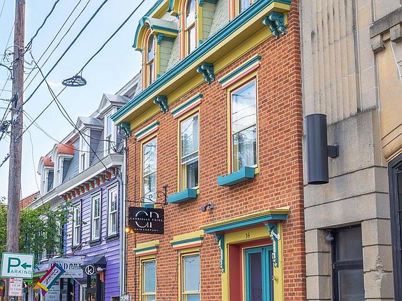 Beautiful downtown commercial building along Carlisle's first block of West Pomfret Street. Located centrally among local businesses, retailers, boutiques, galleries, and eateries! A short walk to downtown amenities - and plenty of foot traffic. Building includes 1,517 SF of charming first floor retail space with hardwood floors, kitchen, and laundry service. Second floor features a spacious, renovated 3 BR / 1 Bath apartment with laundry. apartment has separately metered electricity / natural gas. Paver patio and rear courtyard for outdoor activities. Detached block garage building (28' x 40' = 1,140 SF) with alley access from the rear. Garage has electricity and a 10x12 overhead door. Several stackable off-street parking spaces in the rear. First floor is currently rented at $1,600/month for the retail space; second floor apartment is currently rented at $1,500 a month. The owner is currently using the garage, proposed rent $500 a month.