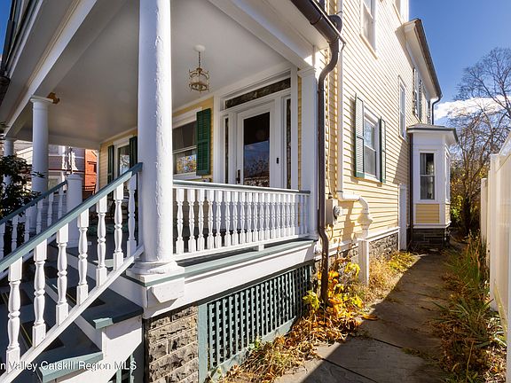 From the recently rebuilt side porch, step outside to discover the one car garage with easy access into the home, as well as the newly built blue stone terrace and garden in the back yard, ideal for relaxing or entertaining. The home is complemented by beautiful new landscaping, providing a serene outdoor retreat. Do not miss the opportunity to own this meticulously maintained Victorian period treasure.