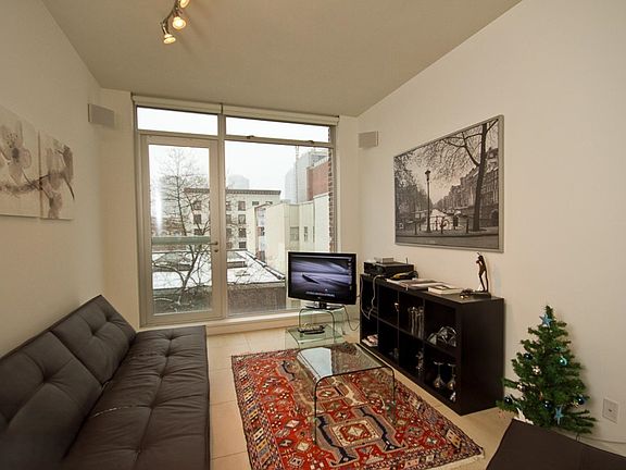 If viewing on Zillow please email/text agent directly, we do not receive Zillow inquiries. 744 sq ft includes a spacious open concept floor plan, modern kitchen with glass cook top, stainless steel counters and backsplash, deep stainless steel sink and integrated refrigerator. Tons of storage space is available throughout this unit, including cabinetry in the bedroom, kitchen, entrance way and even a separate secure storage, and common bike locker. Porcelain tile flooring throughout, 8 built in speakers with volume control and radiant floor heating are just a small taste of what this unit has to offer. One parking space is included, check out the common club house and spacious roof top patio with large BBQ for use. A unique feature that adds to this properties desirability.