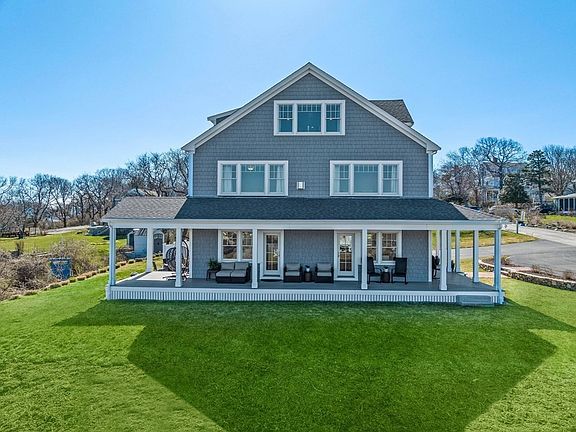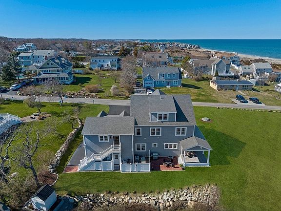 Exceptional opportunity to own a home in highly coveted Old Rexhame, boasting breathtaking panoramic views of the ocean and dunes from all three floors. This stunning newer construction was built with attention to detail and quality, designed to maximize the coastal lifestyle and offer comfort and luxury to family and friends. An Accessory Apartment with its own entrance offers privacy for visitors. The wrap-around porch invites you to relax and enjoy the fresh ocean breeze. Inside, the open-concept living area features a gourmet kitchen with Thermador appliances and custom cabinetry, a living area with crown molding and a 6' linear fireplace, and an adjacent den/bedroom and full bath. The second level boasts an incredible main bedroom suite with sweeping ocean views and a luxurious walk-in closet. The third level is a showstopper, offering an open family/recreation space with a kitchenette and full bath. Rare opportunity to live by one of the best beaches on the South Shore!