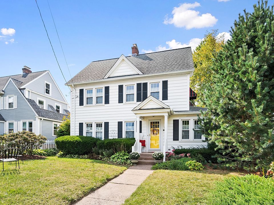Classic Colonial with modern amenities in quaint neighborhood setting. This 3 bedroom, 2 full bath home is FILLED with charm. First floor features living room with fireplace, formal dining room with custom built-ins, sunny kitchen with newer stainless steel appliances, laundry area, cozy sunroom, and a remodeled full bath. Upstairs you'll find 3 bedrooms and remodeled full bath. Original hardwood floors throughout the home. Attached garage, full basement with tons of storage and a full walk-up attic. Updates include brand new (5/24) heat pump mini-split air conditioning system, thermopane windows, architectural roof, oversized oil tank, lovely back deck, and photovoltaic solar. This home is also the proud location of a very popular Little Free Library which has been inspiring readers in the community for years.