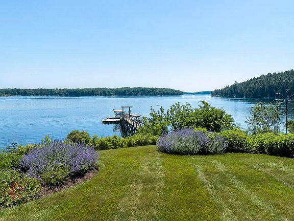 This 3 bedroom, 3 bath coastal contemporary home has 2.5 acres and 520' of waterfront with a private deep water dock and mooring. With commanding, southerly views of the Damariscotta River, beautiful lawn and gardens surround you. One floor living includes a custom kitchen with granite countertops, extensive cabinetry, gas cooktop, double wall ovens and a walk-in pantry; the great room with high ceilings, built-in wood stove and sliders leading to the waterfront patio; a primary suite with a large office, luxurious bath and double walk-in closet/dressing room. Other features include an attached, heated 3-car garage; multi-zone radiant floor heat, microduct A/C, a full dry basement with large family room and a whole house automatic generator.