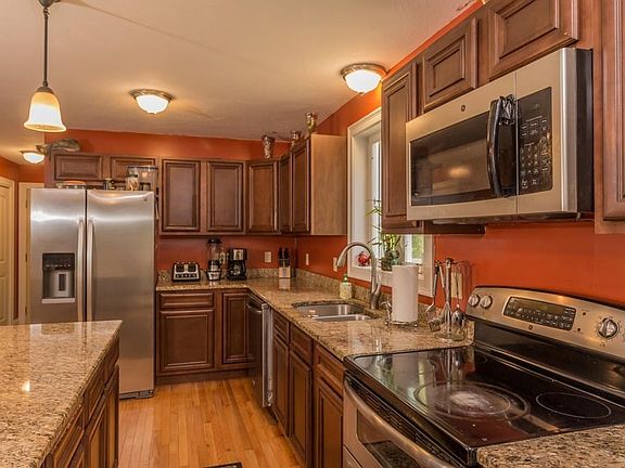 Picturesque Young Colonial offering a spacious kitchen with Cherry Cabinets, Double Oven, Stainless Steel Appliances, Granite Countertops and Island. Dining room with crown molding and chair rail. Hardwood floors throughout the first floor. Spacious Master Bedroom with walk-in closet and master bathroom offering double sinks, whirlpool/Jacuzzi tub and separate tiled shower. Nice size secondary bedrooms and a nice playroom in the heated basement. There is plenty of storage and sliders to the backyard. Deck overlooks a private backyard and stonewalls. Two car Garage with electric opener and interior access.
