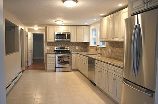 This 3 bedroom Cape is freshly renovated and is located in one of Wakefield's quietest & established neighborhoods within close proximity to Crystal Lake. All new Samsung stainless appliances, new roof, driveway/walkway and new 100 amp panel. Newer Buderus boiler with Riello burner & newer Superstor HW tank. Many new replacement windows. Interior & exterior freshly painted. Walk-out basement to a clear level yard. Move right in!