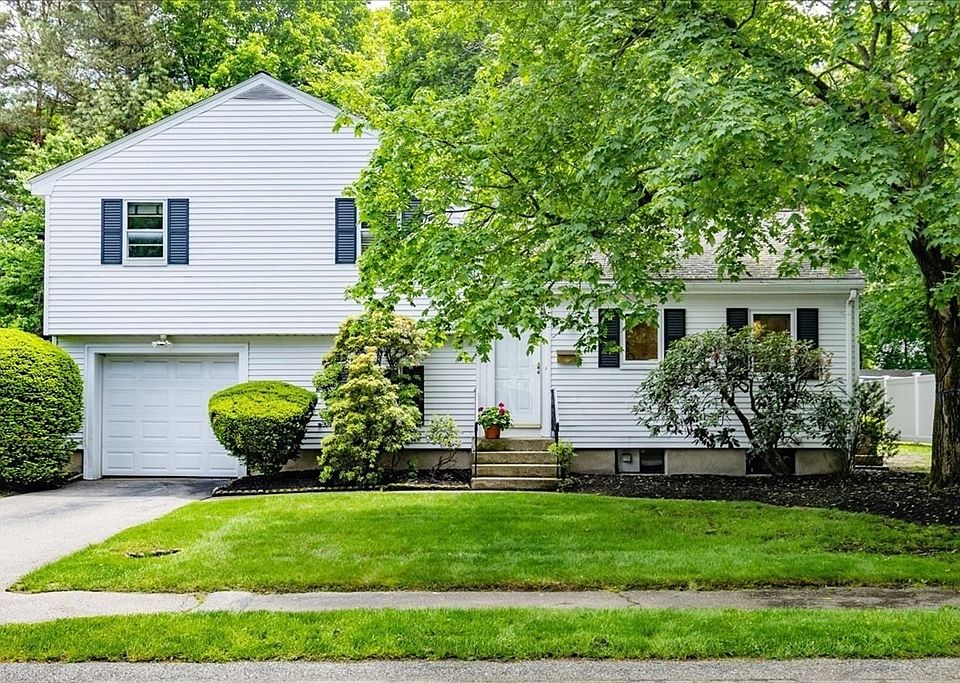 Don't miss this very well maintained home in a desirable, convenient location in Needham Heights. On the main level you will find an updated eat in kitchen with access to the exterior. Just off the kitchen is an oversized dining room with a fireplace great for entertaining. The dining room is open to a large living room with cathedral ceilings & terrific views of the large backyard. Off the living room is a sun room which could be a playroom, guest bedroom, home office or whatever you need the extra space for. The upper level has three good sized bedrooms & a full bathroom. On the lower level off the kitchen is a 1/2 bath, a home office or family room which has direct access to the attached garage. One more level down is another finished room, a laundry area, storage closet & basement storage. There is a large yard with a patio and beautiful mature landscaping surrounding the lot. Enjoy walks around the quiet neighborhood or a quick ride to the highway and the Needham Heights T.