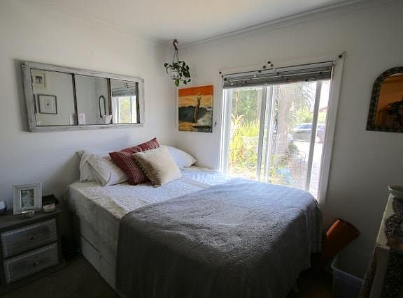 This quiet, furnished 2-bedroom unit is the fourth house from the bay in the safe residential neighborhood of Pleasure Point. It's a favorite of surfers and beachcombers and at low tide it's a 15 minute walk below the cliffs to Capitola Village. The nearest cafe is a 2 block stroll along the bay, you can walk to Capitola Mall and the Boardwalk is just a few minutes drive away. There's an open living room and dining area with sliding doors opening onto a private fenced patio, which is great for children, pets or surfboards. The patio is covered and sheltered from the sun and rain. A small deck in front of the unit has a bistro table and chairs for dining or hanging out in full sunshine. Each bedroom has a large window and wall to wall mirrored closets. There's a queen sleeper sofa in the living room. It's wired for high speed internet and cable TV. The kitchen has a breakfast bar opening to the living area - there's a gas range, microwave, dishwasher and a table for dining or desk. Totally or partially furnished. Two private parking spaces are reserved for you. Gentle pets with well-behaved companions are welcome.$2800 for a 9 month lease. Shorter stays a possibility at a higher rent. For more information or to set up a viewing text or email. Include a phone number or we can't answer your email due to scams. Thanks Owner pays trash and water