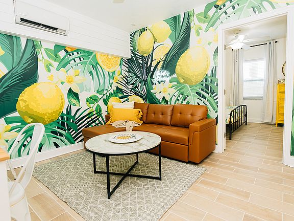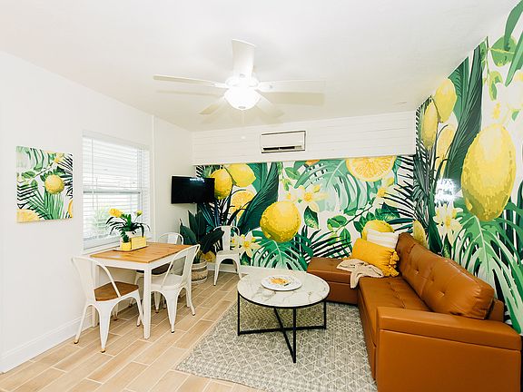 This newly renovated, fully furnished, and fully stocked 1 bedroom/1 bath rental offers a bright, comfortable, and highly convenient living experience in the heart of St. Pete Beach ideal for travel nurses, remote workers, those relocating, or families needing temporary housing. Available for short-term, mid-term, or long-term stays, the apartment is part of a quadplex where each unit features its own uniquely curated theme, and offers a thoughtfully designed interior with a full kitchen equipped with cookware and essentials, a spacious living area with a sofa and smart TVs, high-speed Wi-Fi for remote work, and a modern bathroom with double rainfall showerheads. Sleeping accommodations include a king bed and a sleeper sofa, all with comfortable memory-foam mattress. A professional commercial laundry service provides fresh linens at move-in and move-out for added convenience. The gated outdoor spaces are shared with other units and include turf, a picnic area with string lighting, and an outdoor shower creating a relaxed and inviting environment for unwinding outside. The location is exceptional: less than a mile to both Upham Beach and Sunset Beach, and walkable to restaurants, coffee shops, a convenience store, pizza takeout, local bars (including a microbrewery next door), and the St. Pete Beach Community Center with park amenities, pool access, and EV charging stations. Monthly utilities are included, and on-site laundry is available along with a laundromat next door. The property is clean, well maintained, and professionally managed to ensure a comfortable and seamless stay. Outdoor areas are shared, and pets may be considered with approval. This bright, cheerful, lemon unit - lovingly referred to as "Squeeze the Day" - provides a turnkey option for anyone seeking an easy transition into the St. Pete Beach lifestyle with everything needed for a comfortable extended stay.