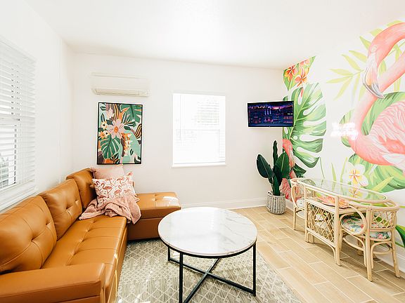 This newly renovated, fully furnished, and fully stocked 1 bedroom/1 bath rental offers a bright, comfortable, and highly convenient living experience in the heart of St. Pete Beach ideal for travel nurses, remote workers, those relocating, or families needing temporary housing. Available for short-term, mid-term, or long-term stays, the apartment is part of a quadplex where each unit features its own uniquely curated theme, and offers a thoughtfully designed interior with a full kitchen equipped with cookware and essentials, a spacious living area with a sofa and smart TVs, high-speed Wi-Fi for remote work, and a modern bathroom with double rainfall showerheads. Sleeping accommodations include a king bed and a sleeper sofa, all with comfortable memory-foam mattress. A professional commercial laundry service provides fresh linens at move-in and move-out for added convenience. The gated outdoor spaces are shared with other units and include turf, a picnic area with string lighting, and an outdoor shower creating a relaxed and inviting environment for unwinding outside. The location is exceptional: less than a mile to both Upham Beach and Sunset Beach, and walkable to restaurants, coffee shops, a convenience store, pizza takeout, local bars (including a microbrewery next door), and the St. Pete Beach Community Center with park amenities, pool access, and EV charging stations. Monthly utilities are included, and on-site laundry is available along with a laundromat next door. The property is clean, well maintained, and professionally managed to ensure a comfortable and seamless stay. Outdoor areas are shared, and pets may be considered with approval. This happy, pink, flamingo unit - lovingly referred to as "Lets Flamingle" - provides a turnkey option for anyone seeking an easy transition into the St. Pete Beach lifestyle with everything needed for a comfortable extended stay.