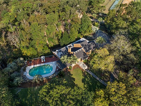 Sellers are looking to downsize but remain in the community! Welcome to this stunning property on the Altamaha River, featuring a private boat ramp and everything you’ve been dreaming of! With 3 bedrooms and 3.5 baths, this home offers spacious living in a breathtaking natural setting. The lodge-like ambiance, highlighted by exposed wood and soaring ceilings, creates a warm and inviting atmosphere. The main level boasts cozy living spaces, including a wood-burning fireplace and a striking stone feature wall—perfect for intimate gatherings. The luxurious owner’s suite is a true retreat, complete with a wood-burning fireplace and access to a wrap-around deck. The en suite bathroom offers a spa-like experience, making it your personal sanctuary. Step outside to enjoy the outdoor amenities, including a fenced saltwater pool with a brand new pump, a hot tub, and a covered deck that overlooks the serene Altamaha River. Additionally, the property features a finished she-shed for storage or hobbies and a workshop for all your boating needs. This home perfectly blends comfort and functionality, set on a generous 3.8+/-acre private lot—an ideal spot for both relaxation and entertaining!