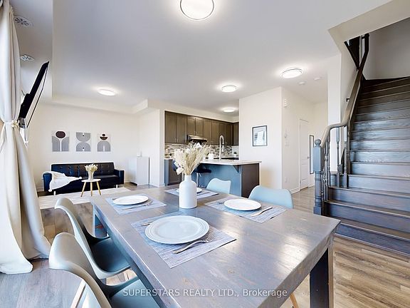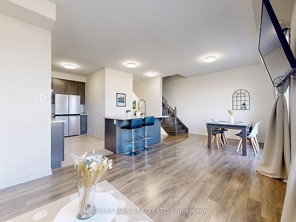 Sun-Filled Modern Townhome in the Heart of Cornell by Mattamy Homes. Welcome to this beautifully designed 3-storey townhome bathed in natural light, nestled in the highly desirable Cornell community. Built by renowned Mattamy Homes, this upgraded residence offers the perfect blend of modern elegance and everyday functionality. Step inside and be greeted by an open-concept layout filled with sunshine, thanks to large windows on every level. The second-floor living area boasts a seamless flow, with wide laminate floors, a walk-out to a spacious balcony, and an abundance of natural light that creates a warm and airy feel throughout. The chef-inspired kitchen is both stylish and practical, featuring a center island with breakfast bar, sleek stainless steel appliances, and generous prep space all illuminated by bright, sunlit surroundings. Retreat to the primary bedroom, a private sanctuary with a walk-in closet, a 3-piece ensuite, and your own sun-soaked balcony, perfect for morning coffee or evening relaxation. Enjoy outdoor living at its best on the expansive rooftop terrace, ideal for hosting, lounging, or simply soaking in the sunlight and skyline views. With approximately 1,426 sq ft of thoughtfully designed living space, this home also offers direct access to a private garage, a second driveway parking spot, and low-maintenance convenience with snow removal and garbage collection included. Perfectly located just steps from Markham Stouffville Hospital, community centre, library, and transit, and only minutes to Hwy 407, Walmart, Markville Mall, top-rated schools, plazas, and lush parks. This is more than just a home, it's a lifestyle of light, luxury, and location in one of Markham's most sought-after neighbourhoods.