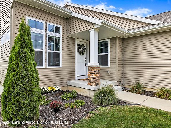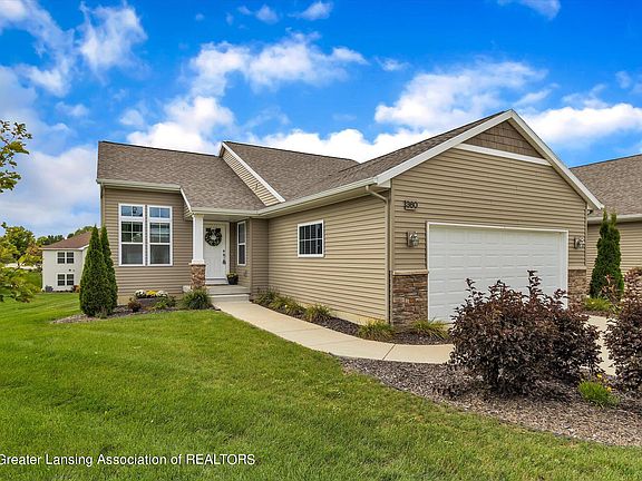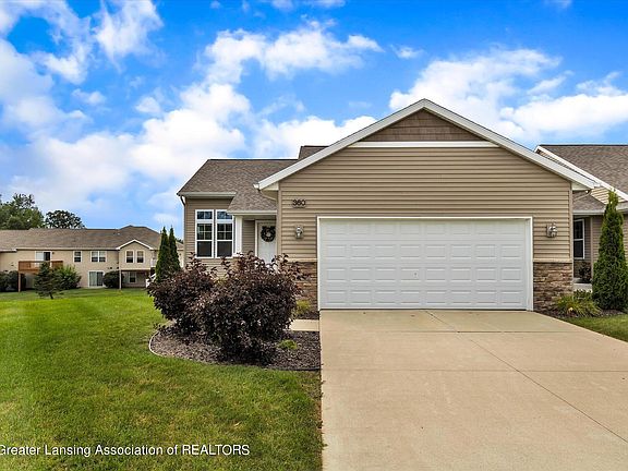 Welcome to 360 Barrington Circle! This gorgeous 2017 built, 2-bedroom, 2-bathroom home is in the ideal condo community of Barrington Woods and located in the Grand Ledge school district. Perfectly situated as an end unit, giving more space and elbow room. Heading through the front door is the open concept first floor with modern laminate flooring throughout. The living room boasts high cathedral ceilings and lots of windows that overlook the finely manicured yard. The kitchen features a large island with barstool seating, granite countertops, stainless steel appliances that stay with the home and a large pantry space. Off the kitchen is a dine-in kitchen nook and a door that gives access to the covered back deck. Rounding out the remainder of the first floor includes: the primary suite that has a large full bathroom and walk-in closet, a large second bedroom, a full bathroom, first floor laundry room and access to the two-car attached garage. The unfinished lower level is ready for your finishing touches! Stubbed for a full bathroom, three egress windows and plenty of storage space. This condo is a must see! Call today to schedule your private showing!