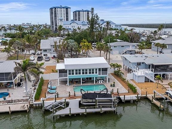 Step into coastal paradise with this fully renovated, Gulf-access pool home just steps from deeded beach access on Fort Myers Beach! Located in Bayland Heights, one of the island’s widest and highest elevation neighborhoods with a new drainage system, and repavement scheduled for 2026, 360 Bayland Rd is a turnkey coastal retreat, fully furnished with custom furniture and artwork, ready for you to move in or rent out immediately. Every inch of this home has been remodeled down to the studs between 2021 and 2025, including all new metal and flat roofs, new A/C, air handler, and mini split in the rare guest suite, as well as all-new plumbing and electrical throughout. The home features 1800 SQFT of unique space: a 2 bed, 2 bath elevated main level (1080 SQFT) and a private 1 bed, 1 bath guest suite (720 SQFT) with full kitchen on the lower level, perfect as an immediate rental opportunity. Additional updates include a new electrical panel for the home and a separate box for the lift, pool, and heater, impact-resistant windows and doors (excluding flex space), all-new Hardie board siding, new exterior decks and railings, hurricane-rated garage door, Cafe smart appliances, soft-close cabinetry, California Closets, and plantation shutters throughout. You'll also enjoy new landscaping, gravel, exterior motion lights, remote-controlled ceiling fans, light switch dimmers, and under-cabinet lighting. The expansive 2,500+ square foot outdoor oasis includes a new heated pool system, outdoor shower, and two screened-in patios with soothing waterfront views. Boaters will love the brand-new Trex dock with double entry, a custom fish-cleaning station, upgraded dock lighting, 10K boat lift, 5K ski lift, and a newly raised seawall. Whether you're soaking in the sun, launching a boat from your backyard, or enjoying a short stroll to the beach, Publix, restaurants, and marina, this home delivers the ultimate coastal lifestyle. The boat is also negotiable! Don’t miss this rare opportunity—schedule your private tour today!