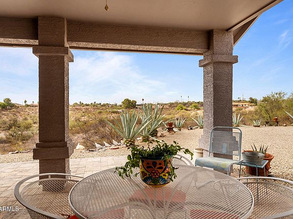 Charming 3-bedroom, 2-bath all-electric home on a picturesque 2.3-acre lot in Wickenburg, AZ. Build your dream horse facility with direct access to the wash for riding. Enjoy 2,065 sq. ft. of comfortable living space, offering privacy and stunning desert views. Inside, a spacious great room features vaulted ceilings, a dedicated dining area, and access to a covered back patio—perfect for indoor-outdoor living. The well-equipped kitchen boasts a large island with a breakfast bar, abundant cabinetry, a walk-in pantry, and included appliances. The generous owner's suite includes a private patio, luxurious bath with soaking tub, separate shower, dual sinks, and walk-in closet. Two additional bedrooms and a guest bath provide comfortable accommodations. Additional highlights include covered front and back patios ideal for relaxing or entertaining, an extended-length two-car garage with fully floored attic storage and a brand-new roof installed in 2023!! This home combines comfort, functionality, and incredible desert views-all in a highly desirable Wickenburg location. Don't miss the opportunity to make it yours!