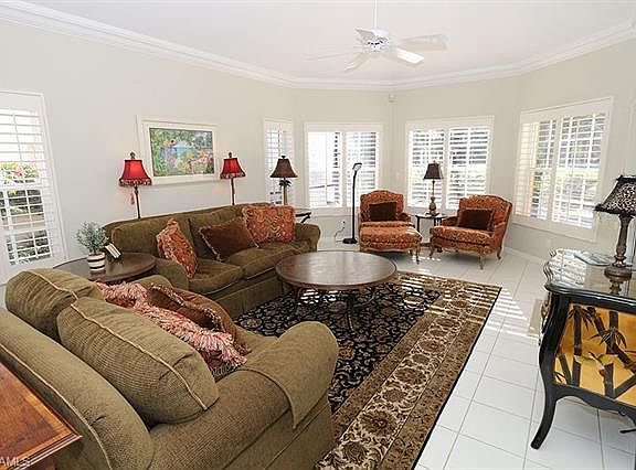 Spectacular panoramic golf course view from this two story Carlton Place Villa in Pelican Bay.Open, airy villa with southern exposure, 3 bedrooms plus den and 4.5 baths.Open pool and patio were recently renovated. On the first floor is a great room and a den (sleeper sofa) and full bath, formal dining room, half bath, eat-in kitchen, high ceilings, plantation shutters- light and bright. The second floor has three bedrooms and three baths and a balcony off the master that overlooks the golf course and pool. Entertainment package includes 50" plasma HDTV in den with surround sound and DVD player, 50" HDTV in Master. Smart 49" HDTV in BR #2, and 32" 720P TV in BR #3. Owner to provide cleaning 2 times a month at owner's expense.Carlton Place is located a short walk from the north tram station for easy access to the beach. Community amenities include tram service to the beach facilities which provide beach chairs and umbrellas, bathrooms, and two private restaurants on the beach. The North and South beach facilities are connected by more than a mile of undeveloped open beachfront. Other amenities include 2 tennis facilities and a State-of-the-Art exercise gym.