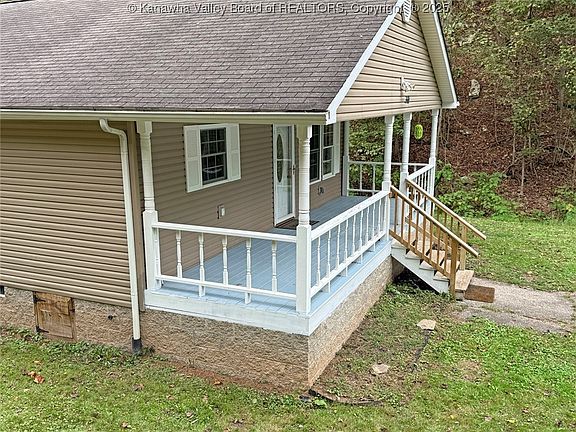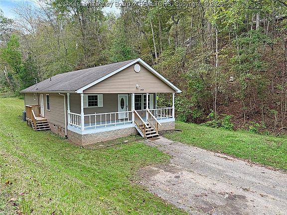 One-story homePrivate wooded landPrivate lotLarge front porchHardwood floorsUp-to-date kitchen