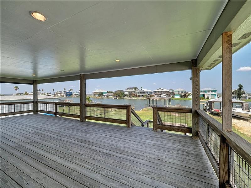 Very nice 4BR, 3BA, Modern Copano Bay front Home. Large sized lot tucked just inside Hanibal Point. Beautiful waterfront home. Boat Ramp, Boat Lift and dock. Bulkheaded. Downstairs apartment. Very unique style and design. Super Nice!! High vaulted ceilings. Custom stained glass windows. Dumb waiter. Comes with some art and furnishings. Main bedroom has a large walk in closet with sitting area. Separate downstairs apartment. This one is a must see!!