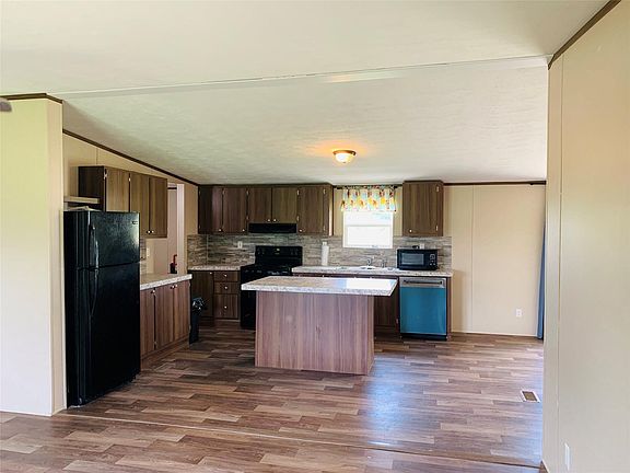 Enjoy the peace! Spacious 3 bedroom, 2 bath manufactured home situated on 1.25 acres of unrestricted land. The open floor plan features a generously sized living room and a family room which opens into the kitchen dining area. The Kitchen offers an island bar, plenty of cabinet space, with a large utility room. Large primary bedroom, large soaking tub, huge walk-in closet. The secondary bedrooms are substantial size with ample closet space. The secondary bath has tub/shower combo. Out back there is a 2 car garage where possibilities are endless to create covered patio, grilling area, firepit, etc. Call today to schedule a private showing!