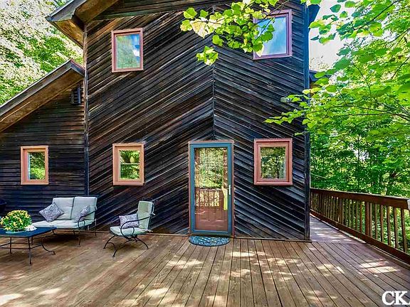 Ever wish you could live like you're on a serene mountain vacation everyday? Now's your chance! This one-of-a-kind, stunning redwood home nestled on Cream Ridge in Junction City boasts four bedrooms and two baths, a partial (finished) basement, a breathtaking vaulted great room, wood-burning stove, eye-catching exposed wood beams, tons of natural light (oversized pane-less windows), stained glass accents, natural hardwood floors and peaceful views of nature from every angle. Relax on the 384 sq. ft. deck and enjoy a babbling brook, blooming redbud trees, honeysuckle, daylilies, walnut trees and more -- a nature-lover's dream! A few large flat, cleared pastures are ideal for farming/recreation, with the majority of the 59.3 acre property mature trees and woods. Hunt, camp, hike and explore nature without ever leaving your backyard. Also on the grounds is a large chicken coup, frog pond, hunting stands and campsite. Some farming emblements included (ask for details).