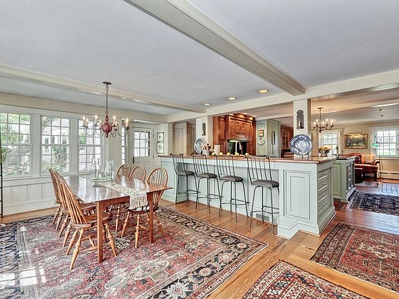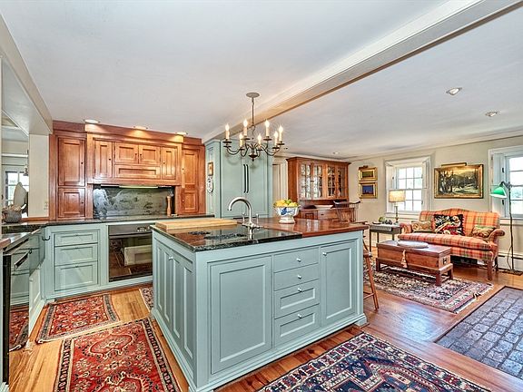 The Captain Daniel Draper home, originally built in 1813 with various additions over the years has maintained its original charm, with wide board flooring throughout most of the living space, multiple fireplaces and period hardware, wallpaper and hand-painted dining room mural. Boasting today’s amenities, including high end kitchen appliances and a beautiful primary suite with ample closets, private balcony and skylights, this home has six bedrooms, three full and one half bath and a finished room in the basement. A guest or home office suite has separate entry and direct access to the sumptuous grounds, including heated in-ground pool and pool house plus koi pond. This is the home for the antique lover who desires easy access to highways, town center and the excellent schools that Westwood offers!