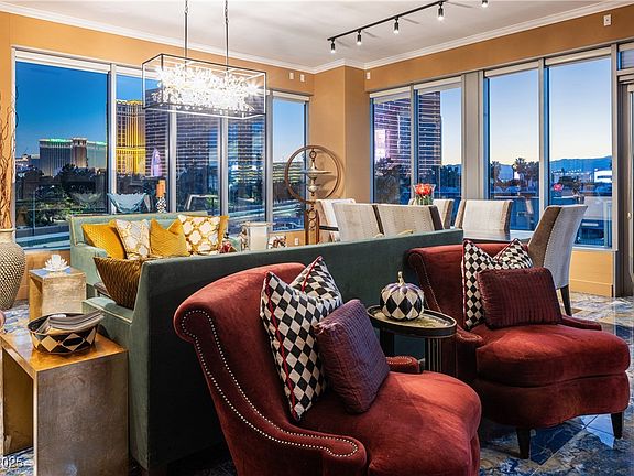 Live in one of Las Vegas’s most architecturally distinctive high-rises, The Metropolis, where Art Deco design meets panoramic views. This stunning residence offers views of the Las Vegas Strip & Sphere. Two private balconies are perfect for taking in the Las Vegas skyline. The living and dining areas with imported flooring bosts dramatic views. The chef’s kitchen is equipped with top-of-the-line GE Profile appliances, including a gas stove-top range, double ovens, warming drawer, granite countertops, flowing seamlessly. The primary suite has direct balcony access, a walk-in closet, and a en-suite bath with soaking tub & separate shower. Bedroom 2 has its own en-suite & private balcony. Additionally, you’ll find a versatile space for a private office, or library. Additionally this unit has 2 side by side parking spaces, and a 6'x9' Sq Ft Storage unit. The Metropolis amenities include: a heated pool, gym, 24-hour security, doggy park, BBQ area, & putting green!