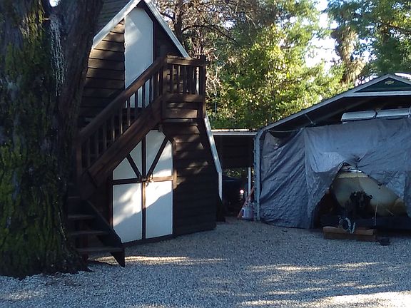 Nestled among matured pine trees in a park-like setting, this Tahoe-styled A-Frame retreat awaits! Gorgeous exposed pine log interior, 24 foot vaulted cathedral ceilings, brand new carpeting, master suite loft with view of acreage & pine trees and dual walk-ins, 22x25 metal car port, 10x14 2 story shop, circular drive way, sparkling above-ground pool with new liner (to be installed prior to COE), Cabana, backyard deck to entertaining, and nearly a full usable/ landscaped acre for your enjoyment