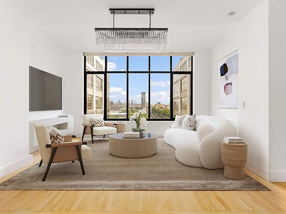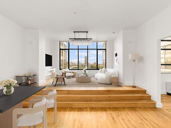 The generously sized apartment allows for complete customization and versatility of its bright, airy, and elegant living and dining spaces. Dramatic soaring 13-foot ceilings and oversized windows flood the home with natural light and frame breathtaking northern views of Brooklyn Bridge Park, Brooklyn Bridge, the New York Harbor, and the Manhattan skyline. This home offers the perfect setting to unwind and entertain guests.