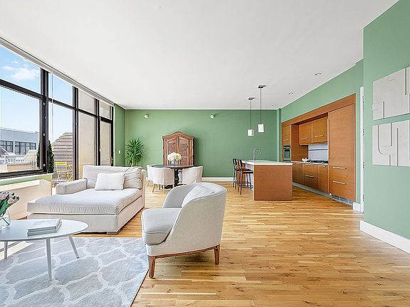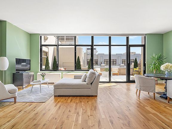 This sunny 1507sf PENTHOUSE with a huge TERRACE has true "WOW" factor! Please note this SUPER SPACIOUS one bed with an EXTRA-LARGE home office is currently used as a TWO bedroom. Upon entering this lofty space, you will immediately notice the dramatic 11' high ceilings and oversized windows that span the entire width of the enormous great room that includes the living, dining room and kitchen. The large and welcoming 426sf TERRACE is located directly off this room and is a serene, green oasis where you can dine, entertain and garden to your heart's content. Southeast light fills the apartment and you have lovely sweeping views of Cobble Hill and beyond.