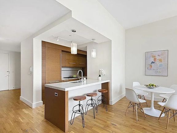 The living room and kitchen give you a wonderful space to call home. Every detail has been planned to perfection from the custom Italian kitchens by Dada, terrazzo-tiled baths, Gorgeous solid oak floors, a washer/dryer, California closets and storage space in the apt. *Also a same floor ~26 s/f storage cage included, too.*