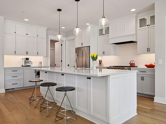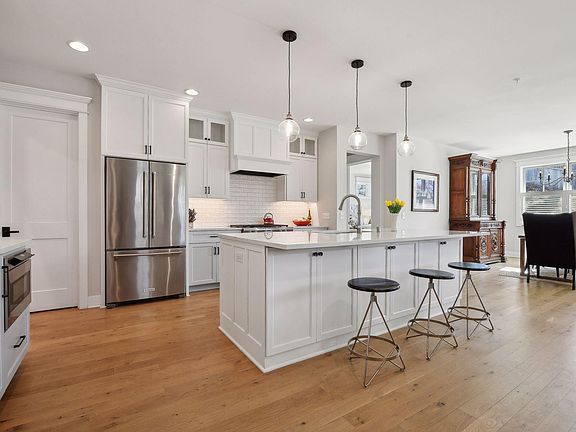 Custom home proudly built by Bohland in 2019, this home has an ideal Wayzata location with easy walk to restaurants, schools, transit, beach, shops, trails, tennis courts and more. With detailed craftsmanship throughout, this home's open layout showcases a desirable main floor walkout with covered deck, stunning main floor master suite, 3 bedrooms up with wonderful loft space, as well as fully finished basement including 5th bedroom and media room with bar and fireplace.Home is ideally suited for entertaining as well as everyday living. Large mudroom, 3-car garage, located at end of quiet street.