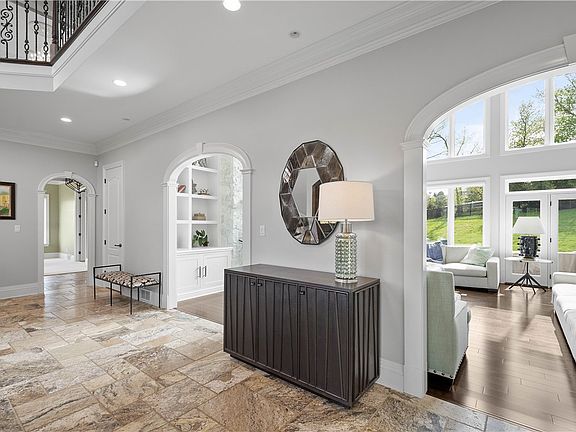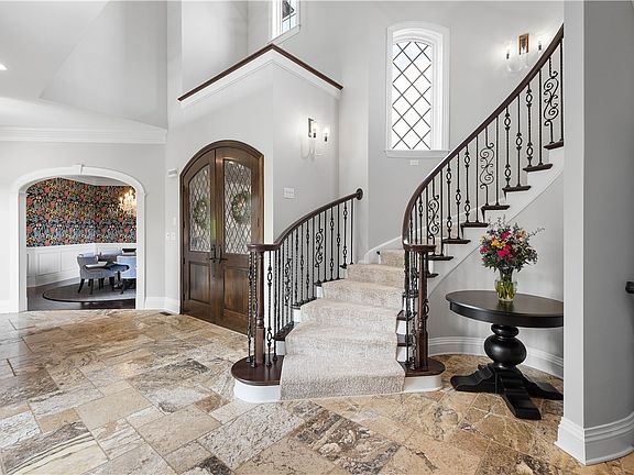 This beautiful and unique 10-year young home truly has it all. Breathtaking foyer with arched walnut doors and Travertine stone flooring. A chef's dream kitchen includes two islands, high-end appliances (Wolf/Subzero), and large walk-in pantry. Two-story great room has stone fireplace, grand bookcases, and coffered ceiling. Main level also includes a sophisticated den, powder room, secondary primary suite or guest room, secondary laundry room, and mudroom with cubbies. Gorgeous curved wrought iron stairs lead to the upper level with the primary suite (with two fireplaces), 4 large bedrooms each with en suite bathrooms and walk-in closets, and the main laundry room. Walk out lower level has large family room with fireplace and kitchenette, wine cellar, exercise room, theater, full bath, and massive storage room. All this on a private 5-acre lot, large fenced in yard with a pool, hot tub, and large outdoor entertaining spaces. Every space has stunning fixtures and exquisite craftmanship.