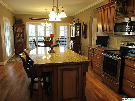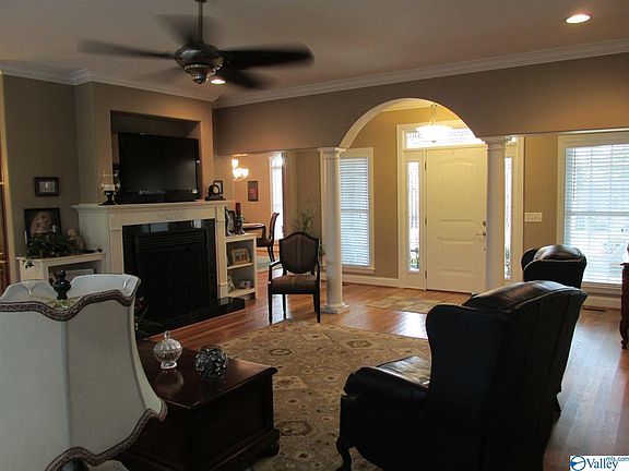 PRICE REDUCED! CUSTOM BUILT BRICK HOME! Open split bedroom design includes 3 bedrooms and 3 baths, elegant entryway has archways and columns, spacious, open living area with fireplace, kitchen has island bar, granite counter tops, pantry, and stainless appliance package, also breakfast area surrounded by windows with access to one of two covered back porches! Formal dining room includes built-in cabinetry. Huge master suite with trey ceiling, fireplace, and sitting area. Master bath features jetted tub, separate shower, double vanities, plus his & hers walk-in closets! Upstairs unfinished bonus room. Hardwood floors, ceramic tile, and crown moldings throughout. Plus 3 car garage!