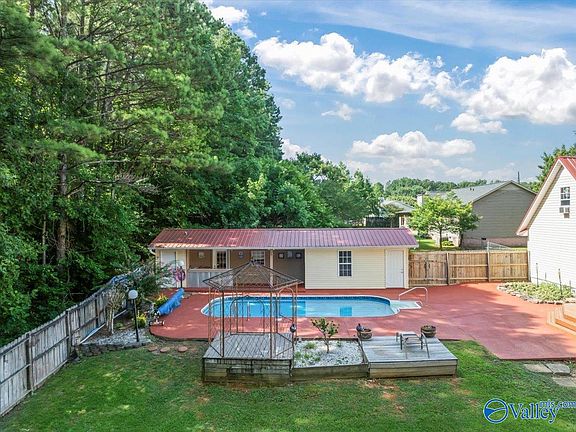 LOCATION, LOCATION, LOCATION! Located in Union Grove, enjoy quick access to Huntsville, Arab, and Guntersville. This 3-bedroom, 2-bath home features hardwood floors throughout the main living areas. A converted garage now serves as a game room with bonus space above, plus a floored attic for extra storage. Stay connected with fiber internet. The backyard oasis boasts an inground pool with multicolor underwater lights, ambient lighting, and a pool house perfect for entertaining. Updates include rear decks, metal roof, and garage siding (2019). Don’t miss this stylish, comfortable retreat—schedule your showing today.