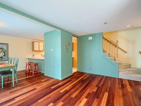 Welcome to one of the finest sought after locations in the "Courtyard" complex. This quiet, private corner Townhouse provides a tranquil sun-bathed retreat overlooking woodlands and a brook. Its two porch decks, surrounded by beautiful garden beds filled with flowering plants, offer a natural oasis while enjoying bird songs and night peepers. A gorgeous Brazilian Cherry hardwood floor creates a warm and inviting peaceful ambiance with plenty of cheerful natural light. Meticulously maintained by original owner. Bright cathedral ceiling master bedroom with skylights, full bath and additional bedroom on the second floor. 3rd bedroom loft with skylight and its own full bath on 3rd floor. Plenty of additional storage in lower level which could be easily finished for extra living area. The Courtyard's friendly resort style living includes a pool, game room, clubhouse and fitness center. Close to shopping with easy access to Rt 495, 3 & 2 for commuting. Close to Bruce Freeman Bike trail.