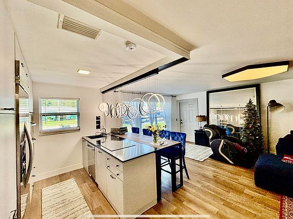 FLORIDA PARADISE, COMPLETELY REIMAGINED! This stunning unit has just undergone a full contemporary renovation, ready for immediate enjoyment. From the moment you step inside, you'll be greeted by new, on-trend flooring throughout the main living areas, flowing seamlessly into the show-stopping kitchen featuring premium cabinets and SS appliances. The spacious bedroom offers a private retreat with an updated ensuite and a large walk-in closet, plus direct access to the secluded patio overlooking a serene, park-like setting. Enjoy a true sense of privacy with no immediate rear neighbors! For ultimate convenience, the laundry room is located just steps from your door. Perfectly positioned for the snowbird or full-time resident seeking modern style and an effortless Florida lifestyle.