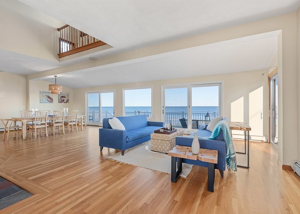 Gorgeous oceanfront oasis directly on one of the most serene and picturesque beaches on the North Shore! Stunning views of the Atlantic Ocean from virtually any room in this meticulously maintained and updated 3-bedroom open-concept home. As you step through the front door you will be captivated by the expansive ocean views. The main level features dramatic living and dining spaces with a large picture window and two sliders to the oceanfront deck, a beautiful kitchen, and an additional seating area with sliders out to the front deck. As you make your way up the winding staircase to the second level you will appreciate the beautiful woodwork and ocean views from two of the 3 bedrooms. On the lower level, you will be greeted by another large family room with a wood-burning stove, a laundry room, a bathroom, and plenty of storage. The two-car garage has a large second floor which could possibly be converted to additional living space. Imagine living on the Northern Atlantic Ocean!