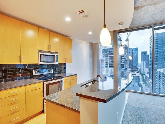 Welcome to your urban oasis in the heart of downtown Austin! This stunning 1 bedroom, 1 bath condo on the 24th floor of the 360 Condominium Building offers a total living space of 801 sq ft and breathtaking, expansive views of downtown Austin. Step into the epitome of high-rise living as you enter this meticulously designed condo with an open-concept layout that maximizes space and natural light. The living area is perfect for entertaining or relaxing, with floor-to-ceiling windows showcasing panoramic views of the city skyline. The well-appointed kitchen boasts stainless steel appliances, sleek countertops, and ample storage space. Enjoy your morning coffee or evening cocktail on the private balcony, soaking in the vibrant energy of downtown Austin. The bedroom is a tranquil retreat with plush carpeting, a spacious closet and efficient laundry closet. The bathroom is elegantly designed with a single vanity and soaking tub. As a resident of the 360 Condominiums, you'll have access to an array of amenities that enhance your lifestyle. Take a dip in the sparkling pool, host meetings in the conference room, stay fit in the gym, host events in the designated spaces, or take your furry friend to one of the convenient dog stations. Located within walking distance to the Lady Bird Johnson Hike and Bike Trail, Trader Joe's, Whole Foods, and an abundance of restaurants, cafes, and entertainment options, you'll experience the ultimate urban living experience. Don't miss this opportunity to own a piece of Austin's vibrant downtown scene. Schedule your private tour today and discover the luxury and convenience of living at the 360 Condominiums!