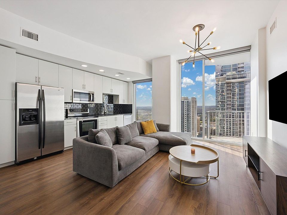 Beautiful west-facing residence offering stunning views of Lady Bird Lake, Zilker Park, and the Austin city skyline. This upgraded home features new wood flooring throughout, custom electric shades, freshly painted interiors with a modern, high-quality finish, floor to ceiling windows and 2 reserved parking spots. The kitchen and baths include new cabinetry with soft-close hinges, updated plumbing, and stylish fixtures. Additional enhancements include a new washer, dryer, and dishwasher—making this home completely move-in ready. Enjoy the perfect combination of luxury, comfort, and panoramic sunset views in one of Austin’s most desirable locations. Building amenities include 24 hour concierge, fitness center, owner's lounge, resort style pool deck & grills, conference room, game room & dog park. Incredible location just steps from Lady Bird Lake, 2nd St District, Seaholm District, Whole Foods, West 6th St & all that Downtown Austin has to offer! Free high speed internet included !