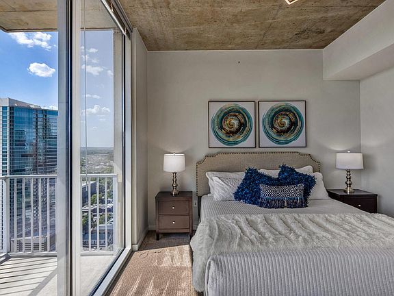 Experience breathtaking west-facing views of Downtown Austin and Lady Bird Lake from this stunning 1 bed, 1 bath residence in the coveted 360 Condominiums. This light-filled home features an open floor plan with floor-to-ceiling windows, modern fixtures, and warm wood flooring throughout. The stylish kitchen is appointed with granite countertops, tile backsplash, stainless steel appliances, and a welcoming breakfast bar—perfect for casual dining or entertaining. One reserved parking space conveys with the property. Resort-style amenities include a sparkling pool with cabanas, outdoor grilling stations, a full fitness center, 24/7 concierge, and convenient dry-cleaning services.Enjoy unbeatable walkability to Trader Joe’s, Whole Foods, the vibrant West 6th entertainment district, and the dining and shops around.