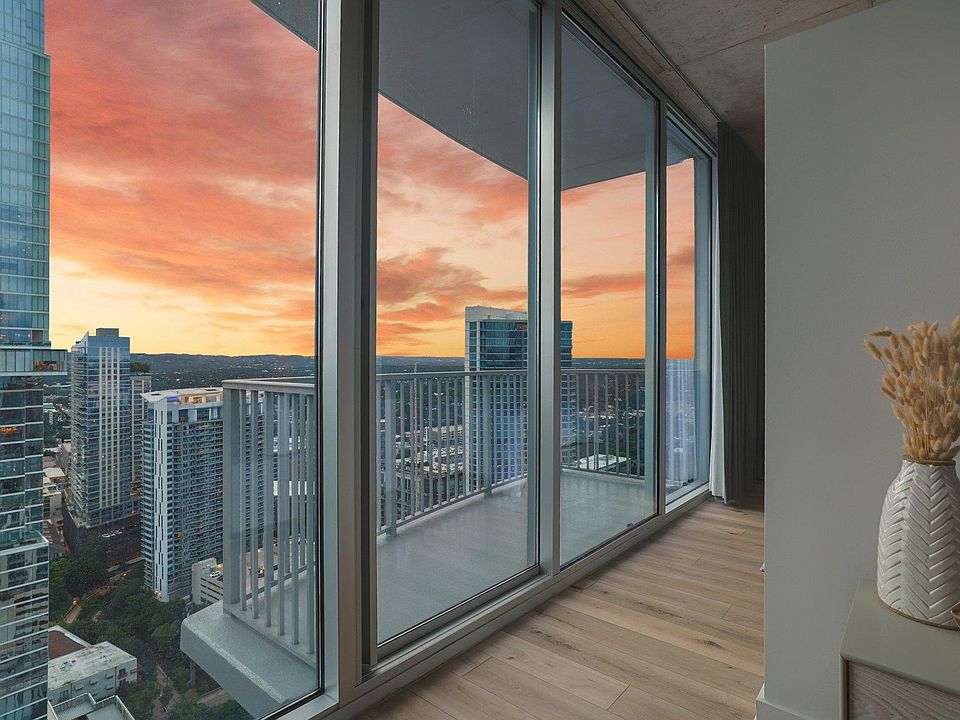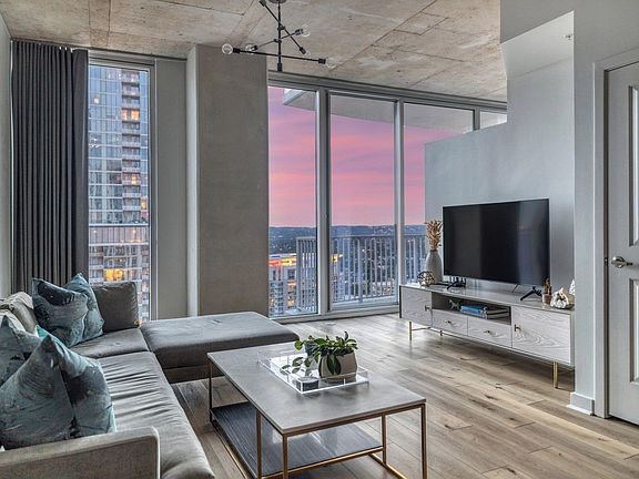 Wonderful opportunity in the 360 Condos, west facing, open floor plan with panoramic views of Lady Bird Lake & the Hill Country. Unit boasts updated flooring and light fixtures throughout, floor to ceiling glass windows, coat closet for additional storage & a private balcony with stunning views! Truly in the heart of downtown and steps to everything you could possibly need - restaurants, coffee shops, hike & bike trails, shopping, Whole Foods and Trader Joe’s, nightlife and entertainment. Condo amenities include a resort-style rooftop pool, grills, clubhouse with kitchen, fitness center, media room, and dog relief area. Turnkey unit, perfect for primary residence or second home. Owner open to conveying the unit furnished (everything except dresser, artwork in bedroom and side table in living area). Pride in ownership shows in this unit, must see this gem!